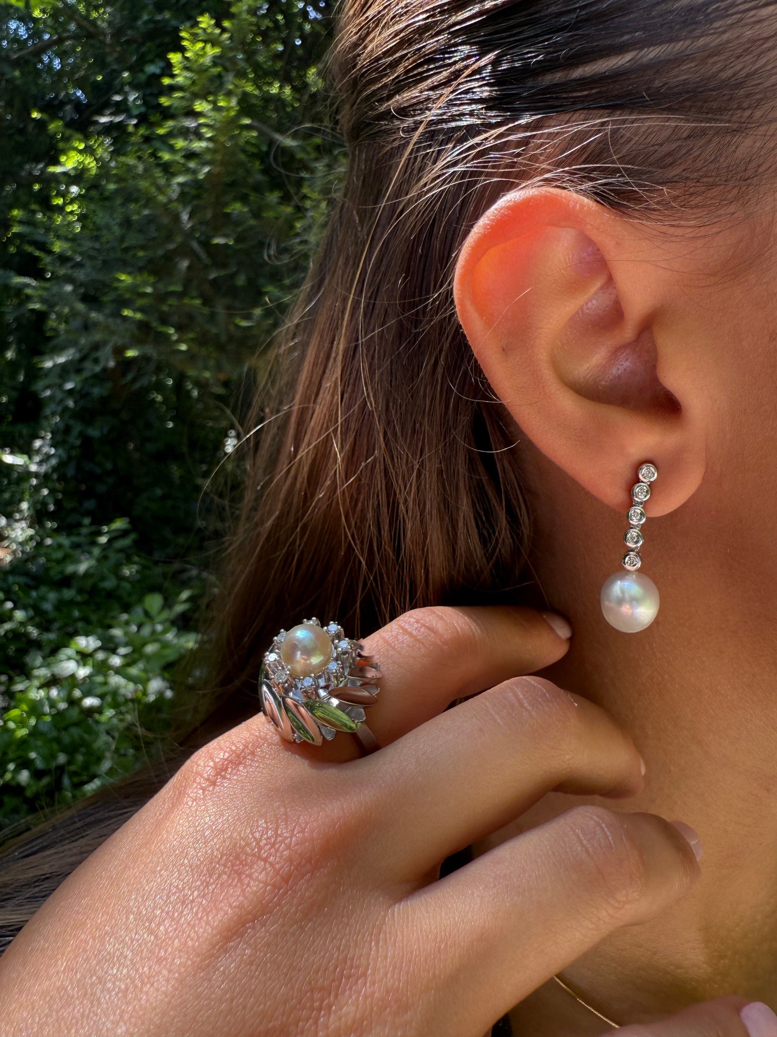 Pendientes de perla con caída de diamantes – «Larmes de Lune»